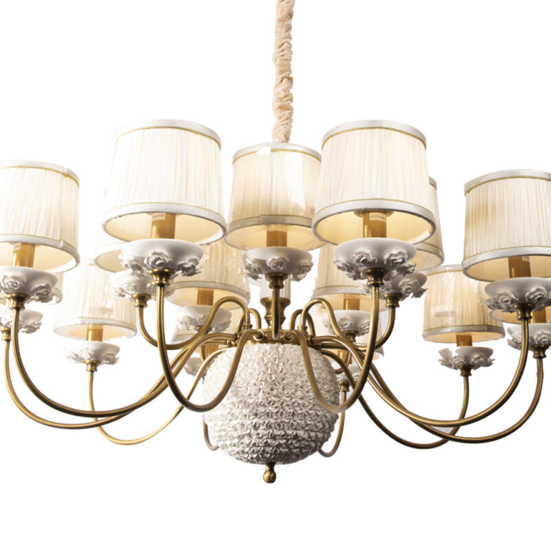 Classical chandelier, crafted from white ceramic in a classic finish, this fixture features 15 curvaceous arms branching out from a decorative ceramic flower bouquet center.