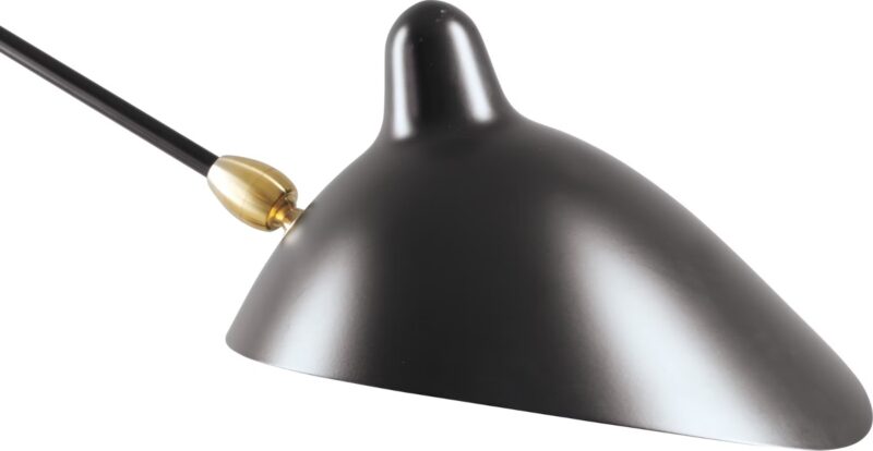 The Three-Arm Floor Lamp stands on a tripod base, and each Chapeau “shade” could be oriented in many ways. Made from carbon steel and aluminum, a matt black finish, with brass detailing on the connectors, add on a 3*E27 bulb and a foot switch. Finally, most parts are already pre-assembled which makes it easy to set up.