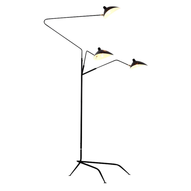 The Three-Arm floor lamp was first made in 1952 in France and it’s a large-scale floor lamp with an impressive presence.